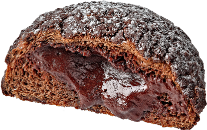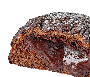 바삭한 초콜릿 비스킷 속에 촉촉한 빵과 진한 다크초콜릿 가나슈가 들어간 빵